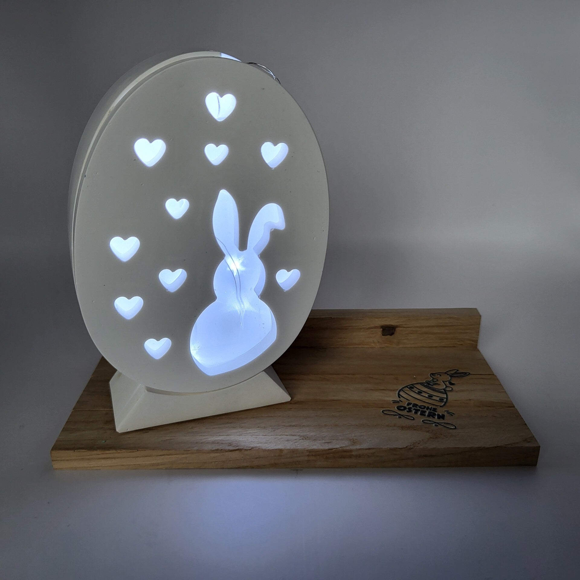Grosses Osterei beleuchtet mit Hasenmotiv